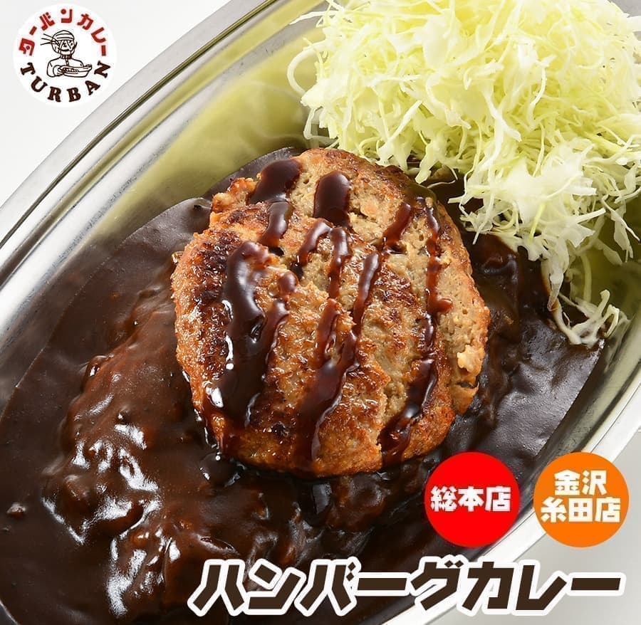 肉厚でジューシーなハンバーグをのせました。金沢カレーとの相性も抜群! カツについで人気のメニューです。